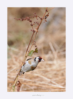 Hola amigos , bien podria pasar por una típica estampa estival la que presenta éste jilguero posado en una Rumex conglomeratus seca ...jeje , o por lo menos yo creo que es eso , más popularmente conocida por Lengua de buey . Ésta vez tiré la foto más lejos y al procesarla opté por recortar menos y crear escena , !! y es que me gustó la taramita !! ..jej